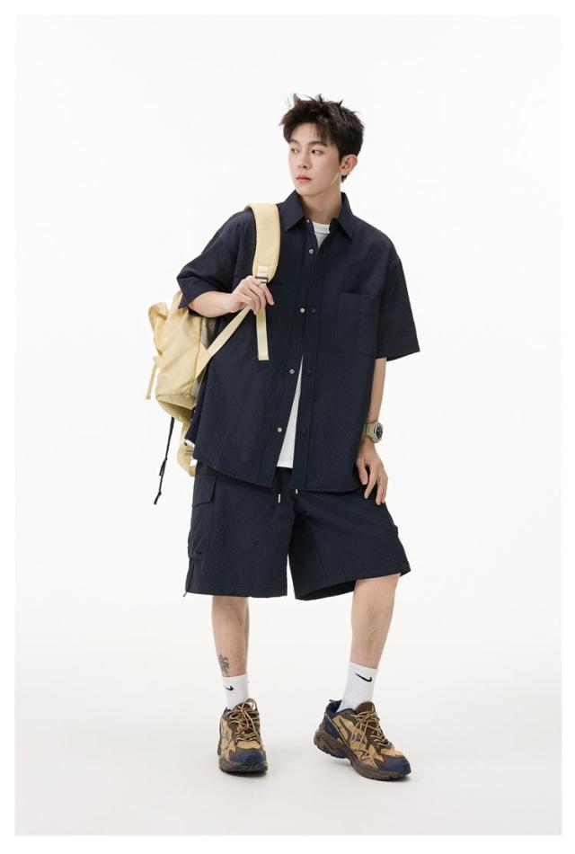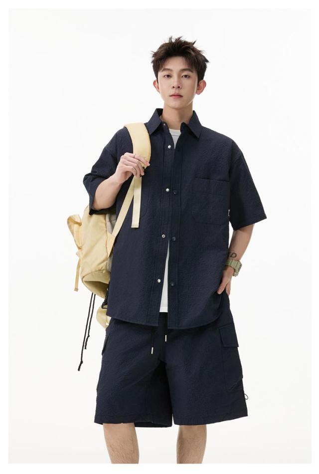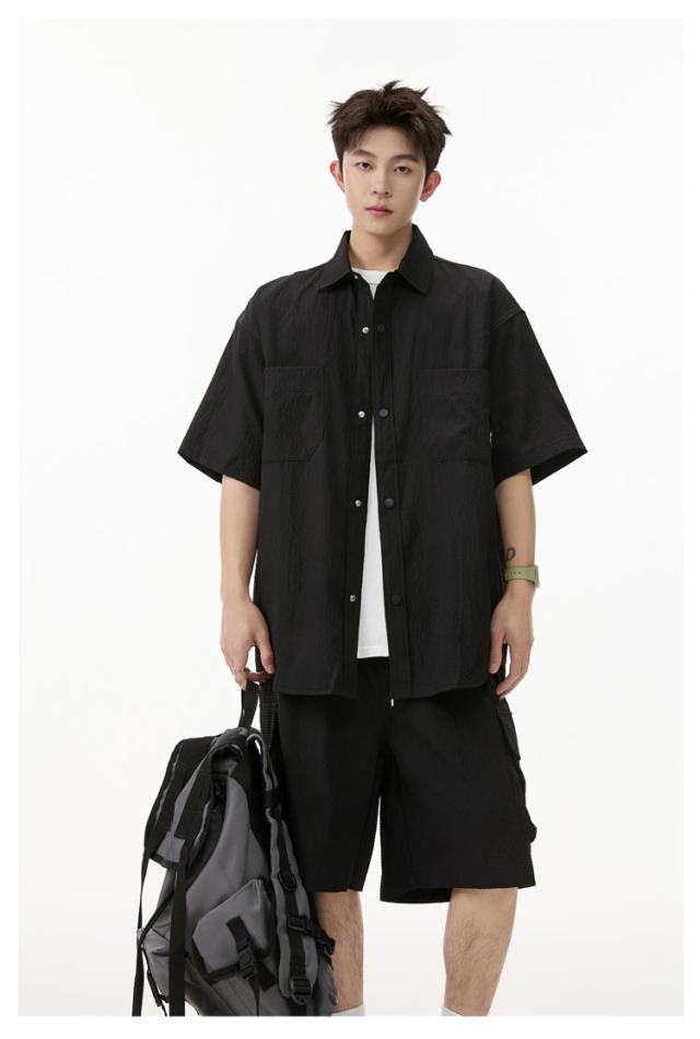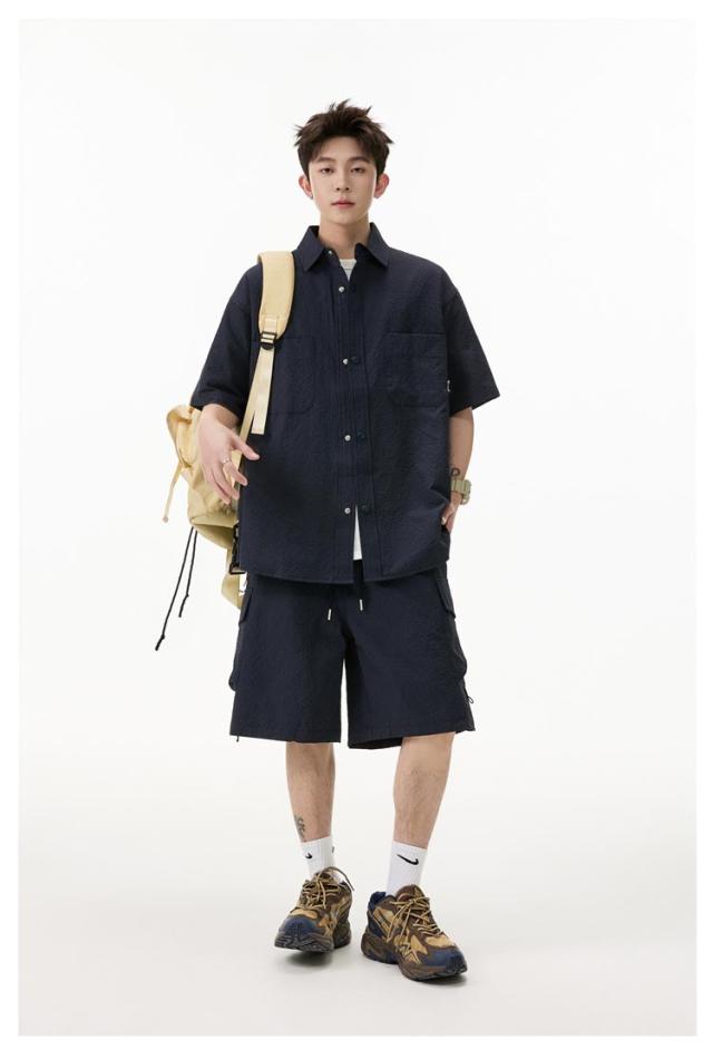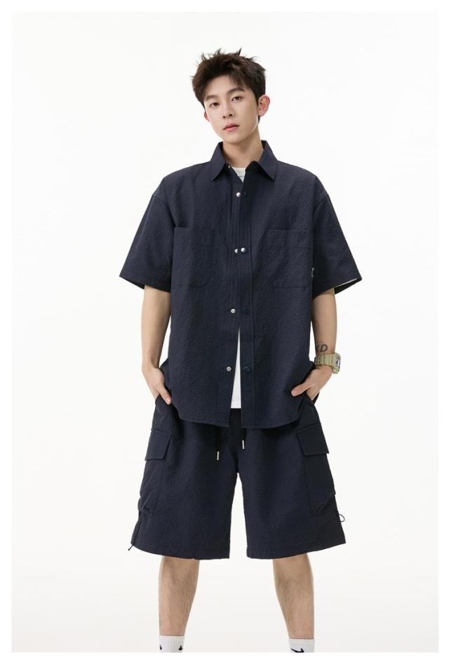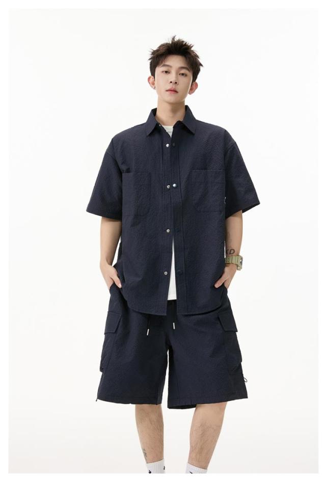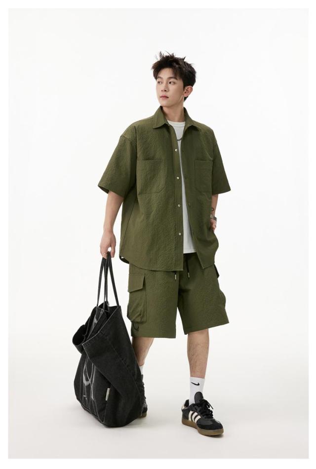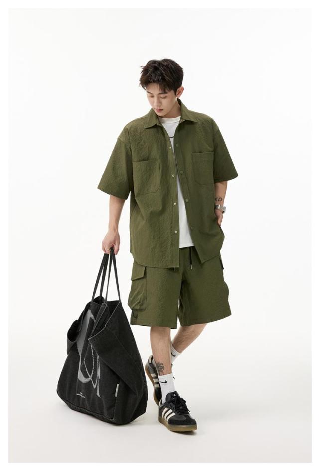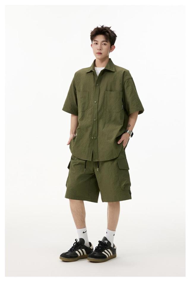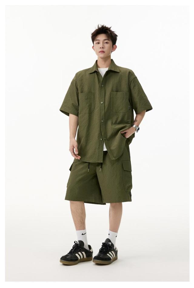 夏 メンズ ショートパンツ おしゃれ シャツセットアップ ハーフパンツ 上下セット 軽量 薄手 大きいサイズ カジュアル シャツセットアップ 夏服 ブラック ミリタリー