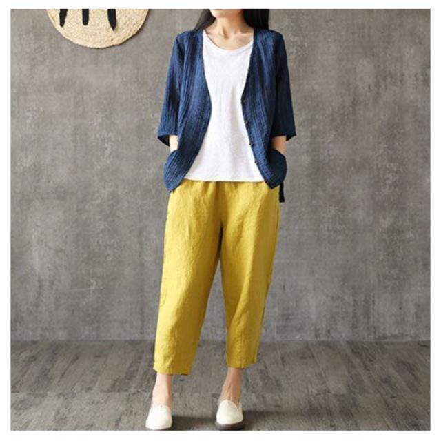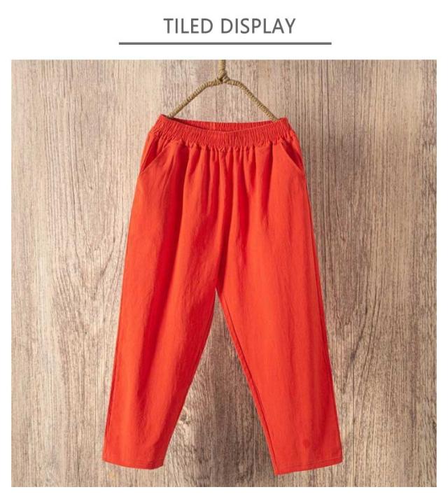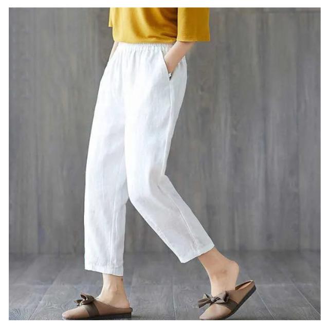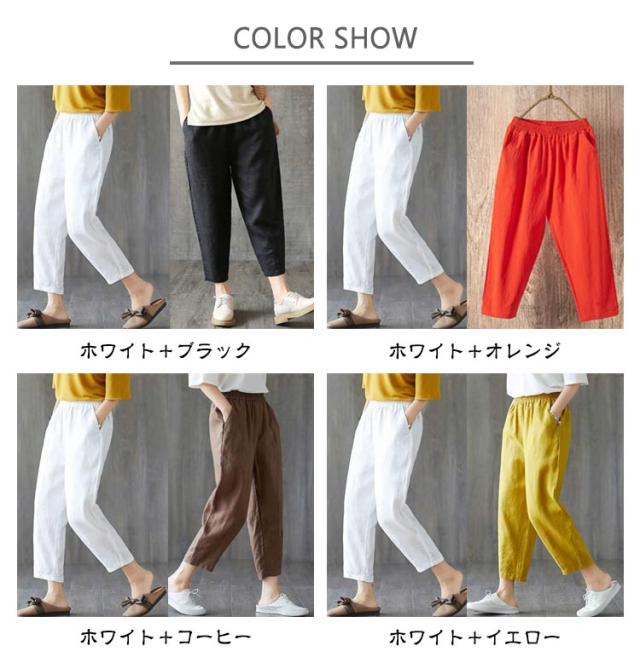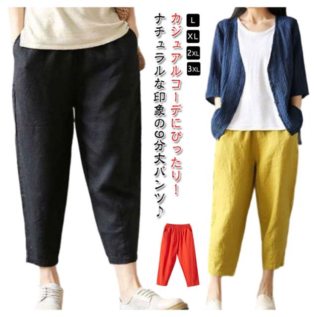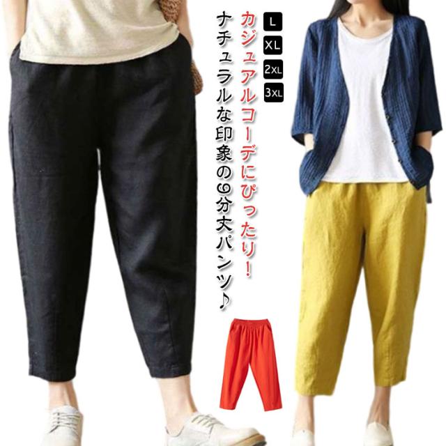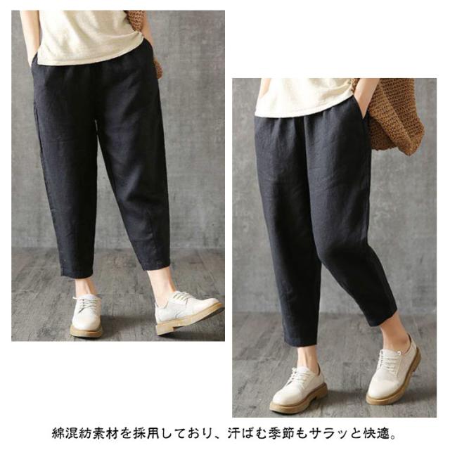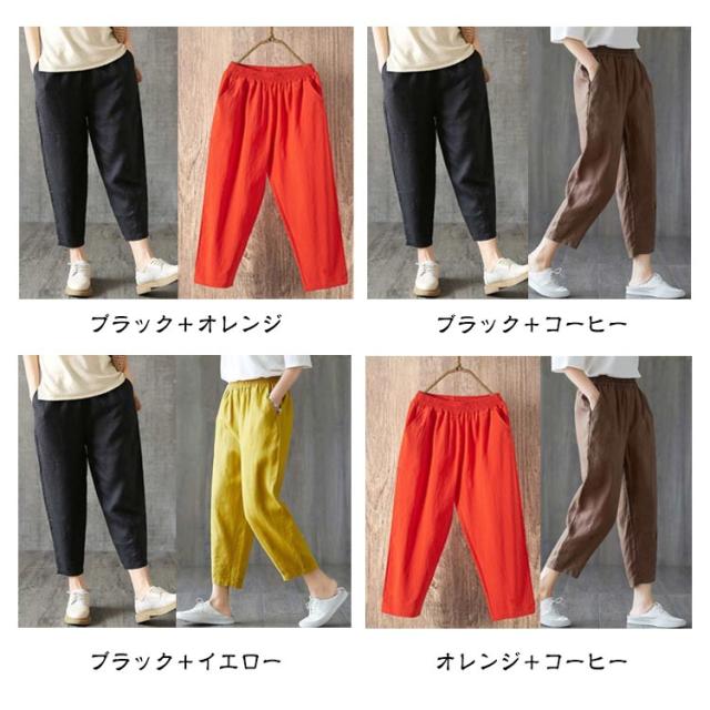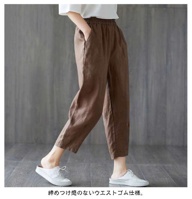 シンプル リネン風パンツ ナチュラル 九分丈 ズボン コットン 綿麻風パンツ 2枚セット 2枚セット ロング丈 テーパードパンツ パンツ パンツ 体型カバー ウエストゴム ボトムス 無地 ゆったり レディース おしゃれ カジュアル 可愛い 大きいサイズ 春 夏