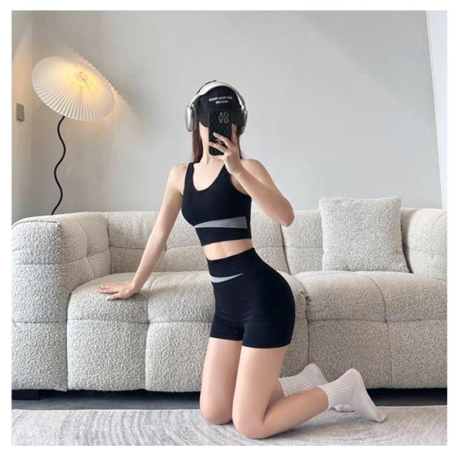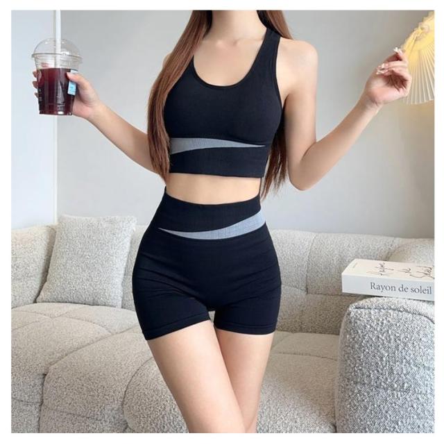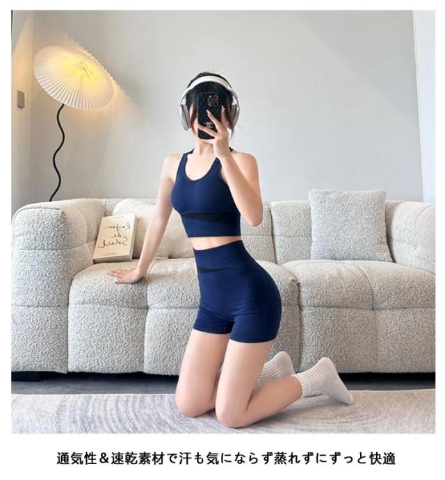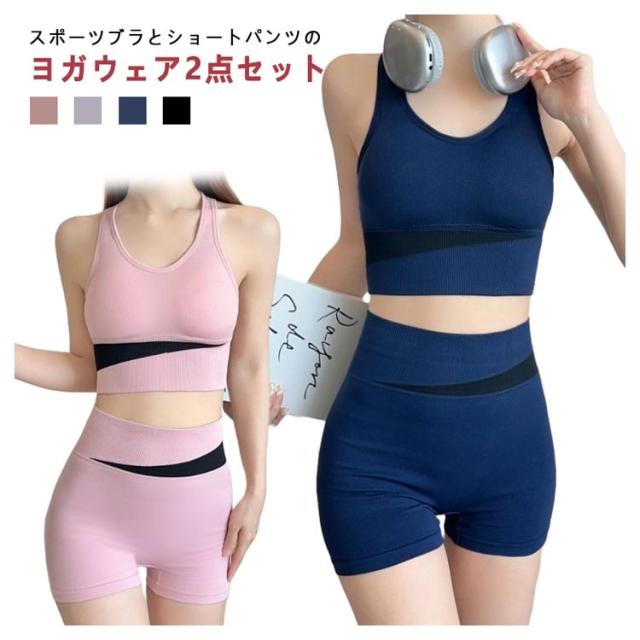 スポーツウェア 上下セット スポーツウェア 送料無料 送料無料 2点セット カップ付き ブラ 吸水 短パン セットアップ ノンワイヤーブラ レディース フィットネスウェア ピラティス ホットヨガ ショートパンツ トップス 速乾 通気性 室内用 室内