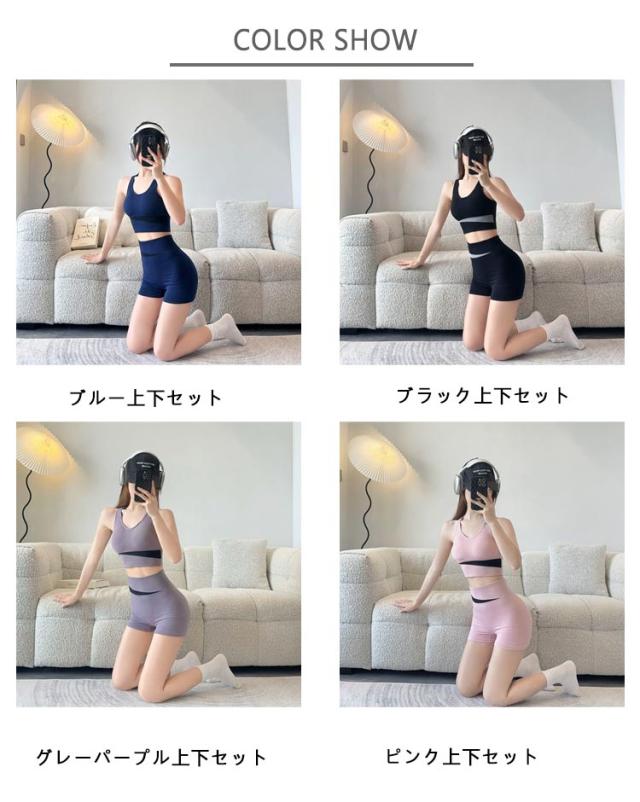 | スポーツブラとショートパンツのヨガウェア2点セット。 アンダー部分は広めに設計しバストをサポート。下から支えるホールドで安定感抜群。 通気性&速乾素材で汗も気にならず蒸れずにずっと快適 汗速乾性の高いスポーツブラ。ヨガやフィットネスにも◎ パッド入り、ワイヤレスブラはしなやかで柔らかく、肌触りもGOOD! 履くだけで美脚。立体縫製による引締め効果と脚長効果で、女性の足をよりきれいに引き立てます。 | |