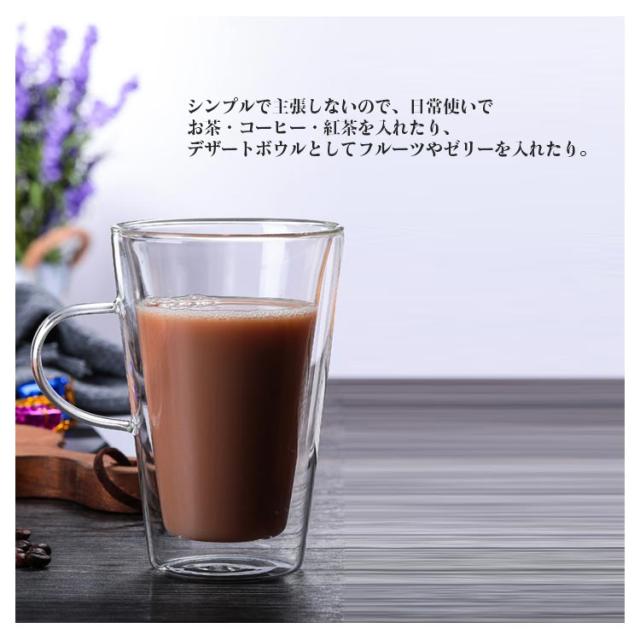 ホット 北欧 コップ ダブルウォール コーヒーカップ マグカップ 400ml 2個セット 取っ手付き グラス おしゃれ 2個セット 耐熱ガラス ティーカップ アイス タンブラー 結露しにくい 二重グラス 食洗機対応 北欧 食器 お祝い 誕生日