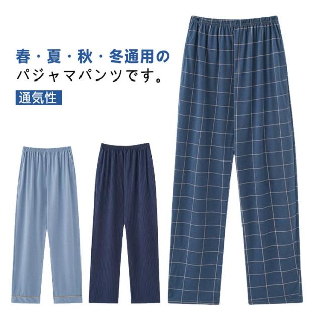 部屋着 ルームパンツ 春 秋 ロングパンツ ルームウェア 夏 メンズ メンズパンツ ゆったり パジャマ 肌着 チェック柄 パンツ 長ズボン 着心地 無地 コットン リラックスパンツ ゆったり 綿 下だけ 寝巻き 吸汗 通気性 軽量 ウエストゴム