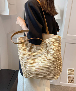 トートバッグ レディース リゾート 手提げバッグ ビーチバッグ 花火大会 夏 肩掛けバッグ 軽量 編みかご鞄 休日コーデストローかごバッグ 旅行手提げバッグ ナチュラルサマー鞄
