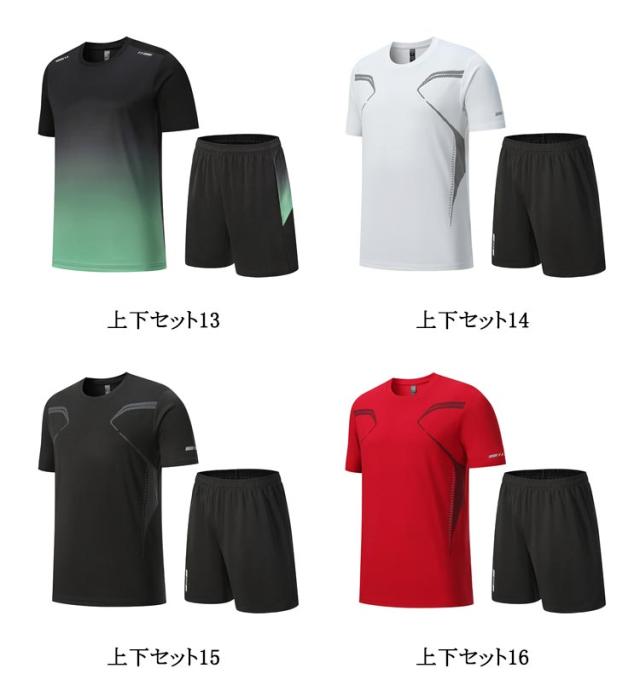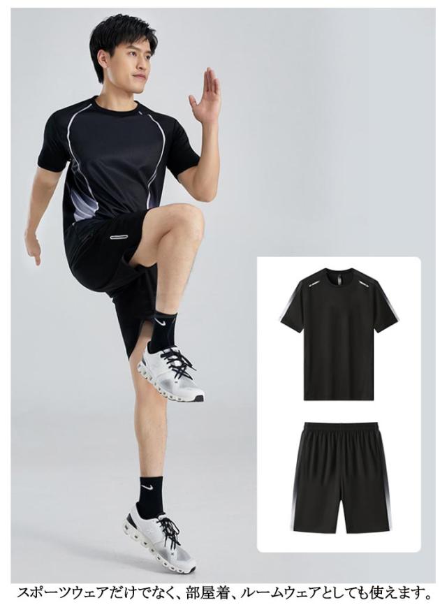Tシャツ スポーツウェア 上下セット ランニングウェア 半袖 メンズ 吸汗速乾 ハーフパンツ 通気性 トレーニングウェア 薄手 2点セット 無地 夏物 軽量 ドライ 部屋着 ジム 大きいサイズ