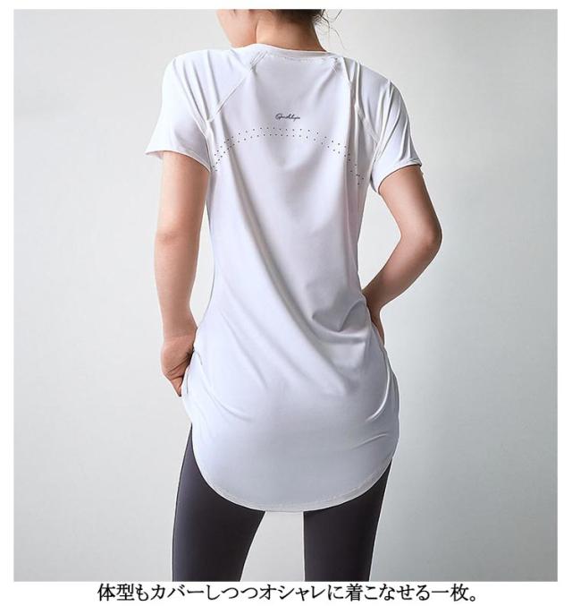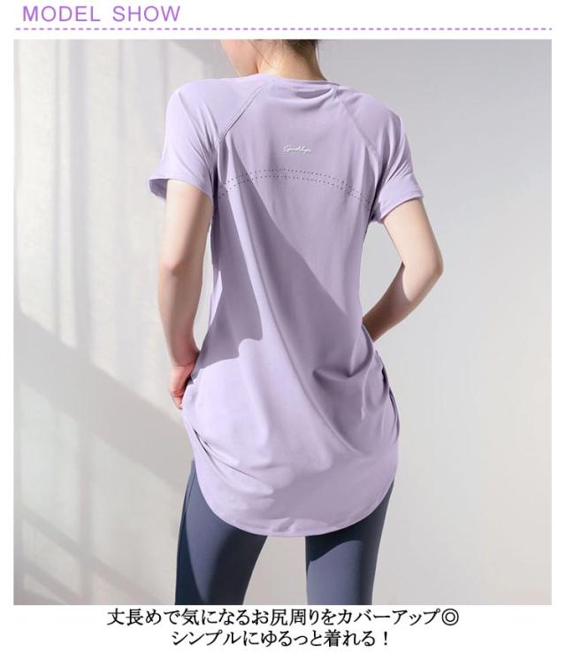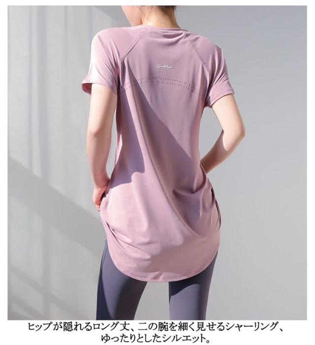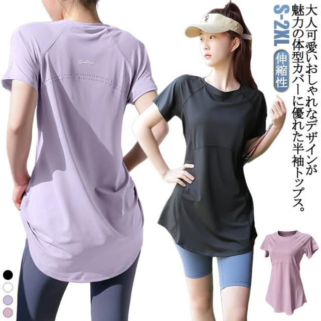 ピラティス レディース かわいい 伸縮性 半袖 ヨガ ヨガトップス ジムウェア 薄手 トップス ヨガウェア ゆったり スリット 丈長め ヨガウェア ヨガ おしゃれ 黒 ウェア スポーツ フィットネス 体型カバー速乾 ホットヨガ ストレッチ