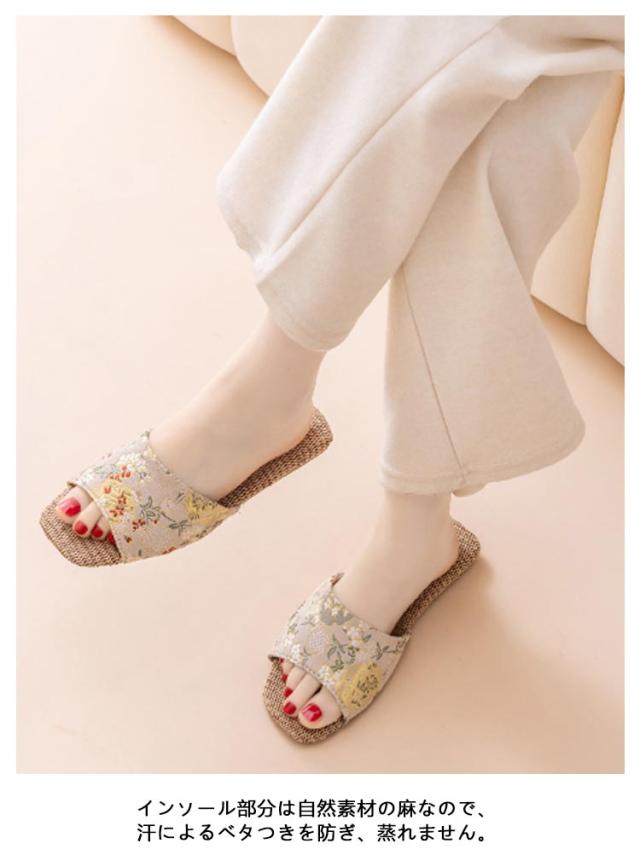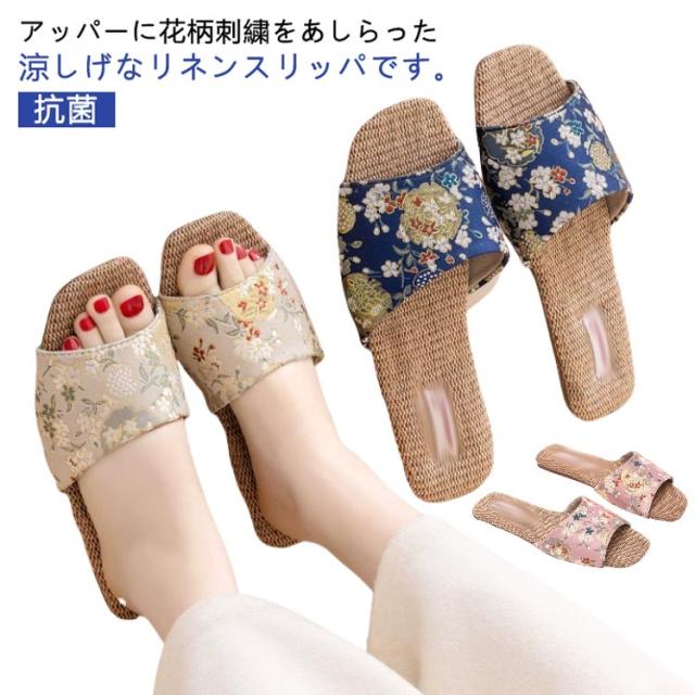 レディース 麻スリッパ 花柄 軽量 刺繍 春 スリッパ ルームシューズ フラットサンダル 室内履き ルームスリッパ 痛くない 蒸れない リネンサンダル 抗菌 疲れない スリッパ 涼しい 歩きやすい 防臭 夏 洗える 来客用 学校行事 春用 夏用
