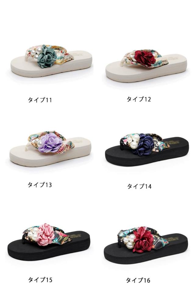 厚底 ビーチサンダル 女の子 花モチーフ付き トングサンダル レディース 歩きやすい ウェッジヒール 痛くない ビーチサンダル サンダル ビーチ 海辺 旅行 夏祭り 花火大会 カジュアル