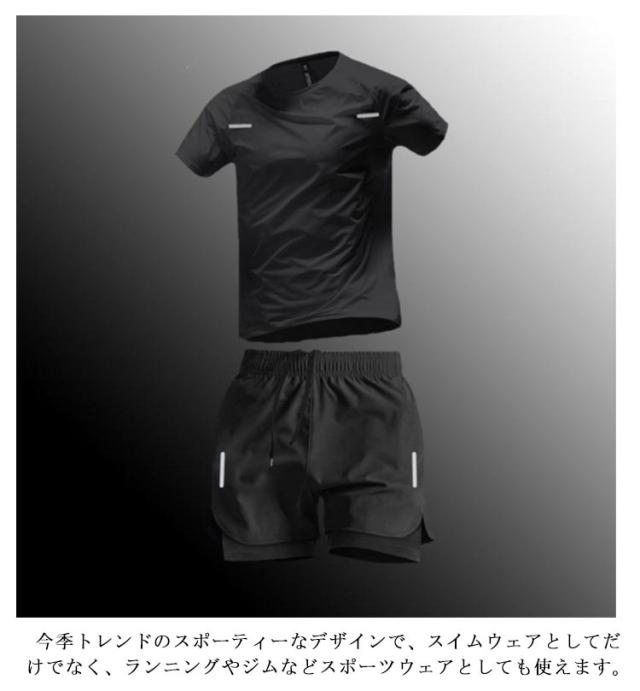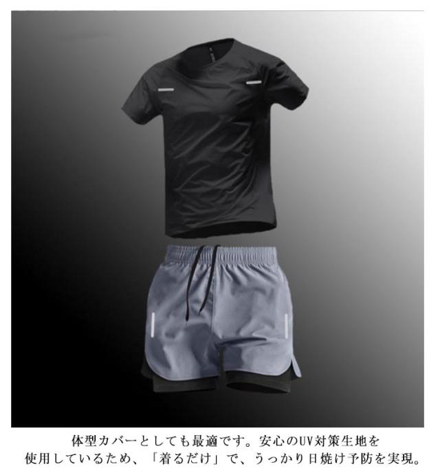 UVカット サーフパンツ メンズ フィットネス UV対策 ラッシュガード 半袖 ラッシュガード 水陸両用 2点セット 紫外線対策 上下セット 体型カバー 水着 水泳 競泳 競泳水着 ビーチ スイミング 男性 大きいサイズ スイムウェア 耐塩素 日除け 日焼け防止