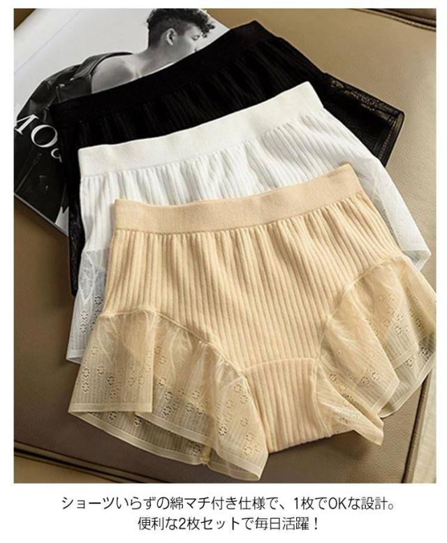 パンツ 下着 防止 裾レース ペチパンツ リブ 【2枚セット】見せパン インナーパンツ ショーツ パンツ レディース 夏用 ショートパンツ