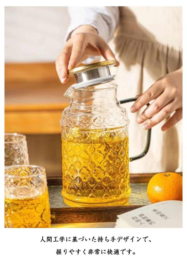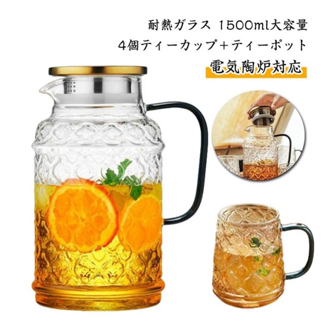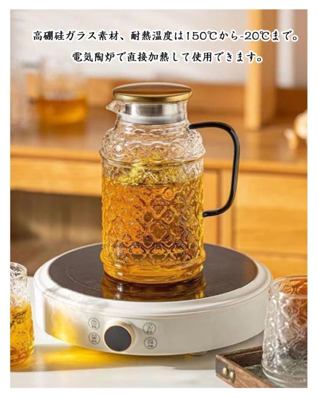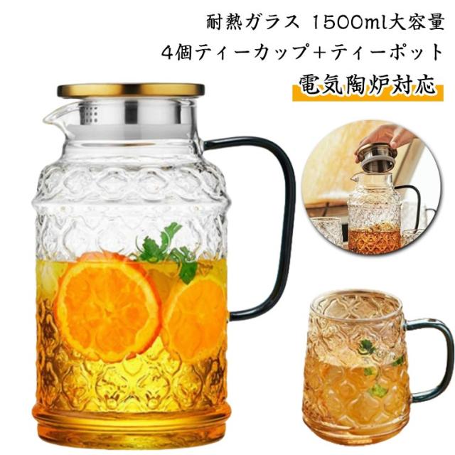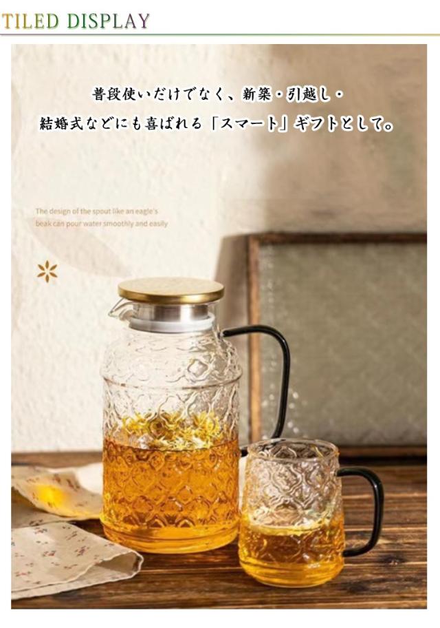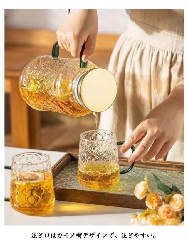 家庭用 耐熱ガラス 冷水ポット 急須 セット 海棠花デザイン クールウォーターポット ガラス製 ティーカップ付き ジュース 海棠花デザイン 大容量 ミルク 牛乳 飲み物 ハーブティー 紅茶 緑茶