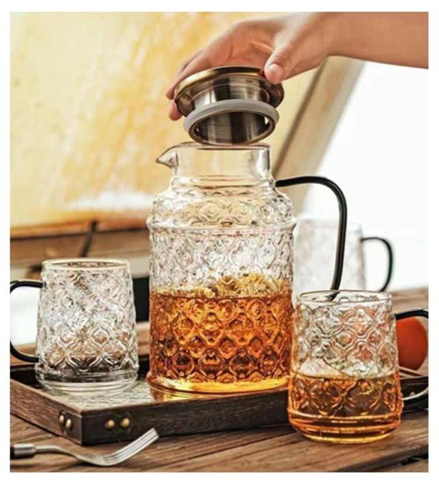 | 4個のカップ付きの海棠花デザインポット。 1500mlの超大容量、一度で家族全員が一日中飲める十分な量です。 高硼硅ガラス素材、耐熱温度は150℃から-20℃まで。 電気陶炉で直接加熱して使用できます。 人間工学に基づいた持ち手デザインで、握りやすく非常に快適です。 注ぎ口はカモメ嘴デザインで、注ぎやすい。 海棠のエンボス模様、手触りが快適で、古風で飽きのこないデザインです。 普段使いだけでなく、新築・引越し・結婚式などにも喜ばれる「スマート」ギフトとして。 | |
