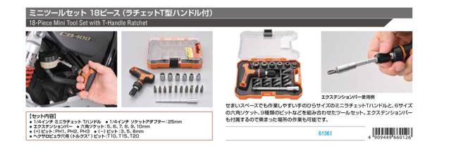 デイトナ(Daytona) バイク用 工具セット コンパクト T型ラチェット エクステンションバー付 1/4インチソケット対応 ビット・ソケットミニツールセット 18ピース 61361