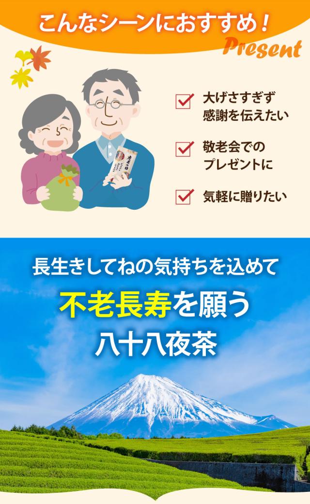 八十八夜新茶は「いつもでも元気でいてね」の気持ちを伝える、 最適なプレゼントなのです。
