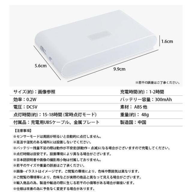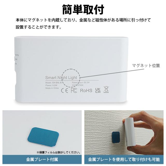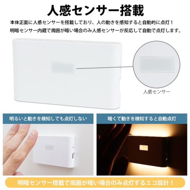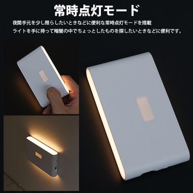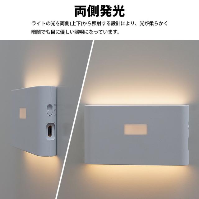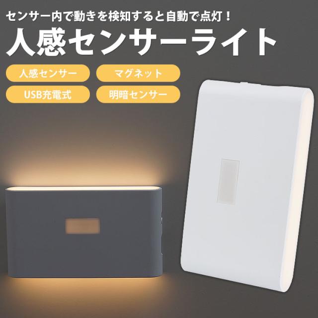 センサーライト LEDライト ナイトライト 人感センサー マグネット 磁石 明暗センサー USB充電式 バッテリー内蔵 常時点灯 両側発光 簡単取付 階段 廊下 PR-SNL-B【メール便 送料無料】