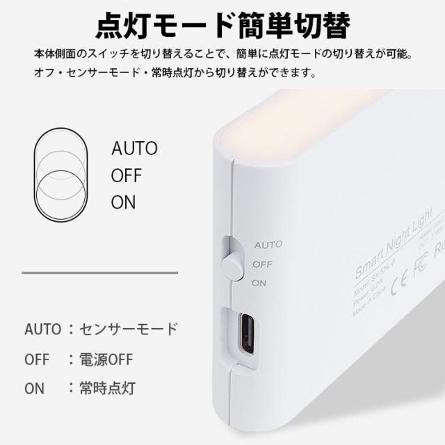 センサーモードや常時点灯モードを搭載した小型のナイトライト。