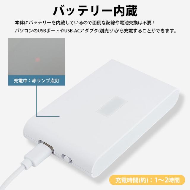 本体にバッテリーを内蔵しているので面倒な配線や電池交換は不要!