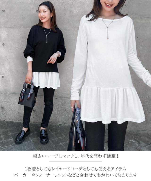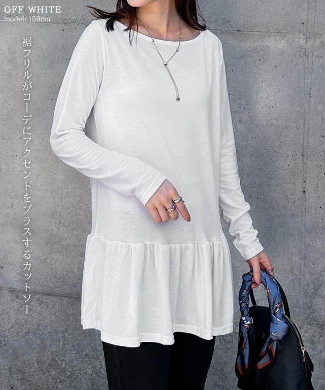 裾フリルシンプル長袖ビッグカットソー レディース きれいめ トップス Tシャツ 薄手 秋 ゆったり 裾フレア ペプラム チュニック 大きいサイズ カジュアル 可愛い 無地 ワイド 重ね着 レイヤード デイリー ロンT 切替デザイン 大きめ 丸首 ラウンドネック ボートネック 伸縮 おしゃれ オフィス 通勤 洗える ウォッシャブル 韓国ファッション お出かけ< ロング丈 ロングTシャツ ロングカットソー 切替 切り替え 付け裾 つけ裾 インナーシャツ レイヤードインナー スーツインナー ストレッチ 伸縮性 軽量 軽い 軽め 大きい 柔らかい やわらか なめらか 滑らか フリル フリフリ ふりふり 通学 かわいい 大人可愛い 大人カジュアル オフィスカジュアル ガーリー フェミニン OL 上品 ダンス 衣装 プラスワン 普段使い 普段着 着回し ベーシック 仕事 学校 韓国 定番 ロングシーズン 春 夏 冬 春夏 秋冬 ワンマイル 白 黒 ホワイト ブラック グレー カーキ 緑 チャコール 灰色 デート お呼ばれ 二次会 女子会 男ウケ 高校生 大学生 お買い物 ショッピング 野外 街着 k-pop アイドル コンサート ライブ イベント 大人 女性 10代 20代 30代 40代 50代 洗濯 切り替え 服の下 体型カバー 体形カバー 体系カバー ヒップカバー お尻隠し お尻カバー ぽっこりお腹カバー ぽっちゃり マタニティ 妊婦 ゆるてろ レーヨンブレンド レーヨン混 あったか 暖かい 防寒対策 寒さ対策 冷え対策 プルオーバー