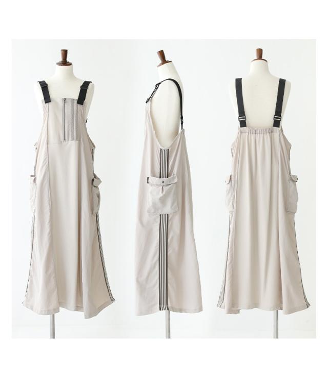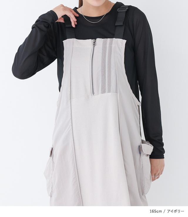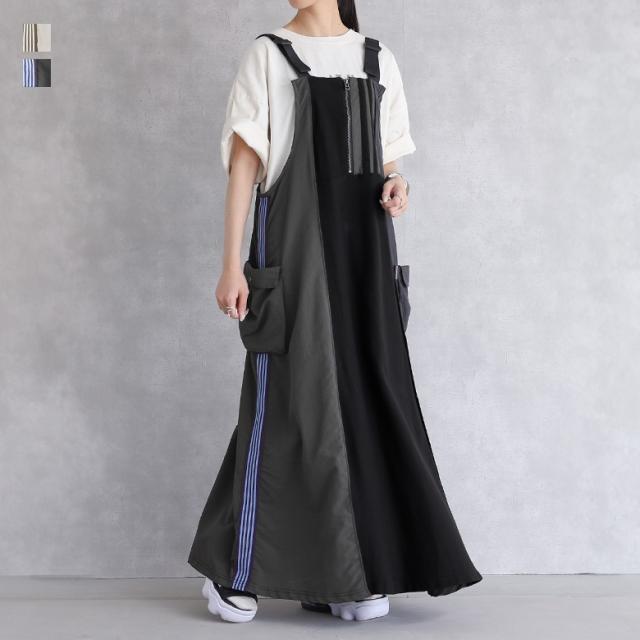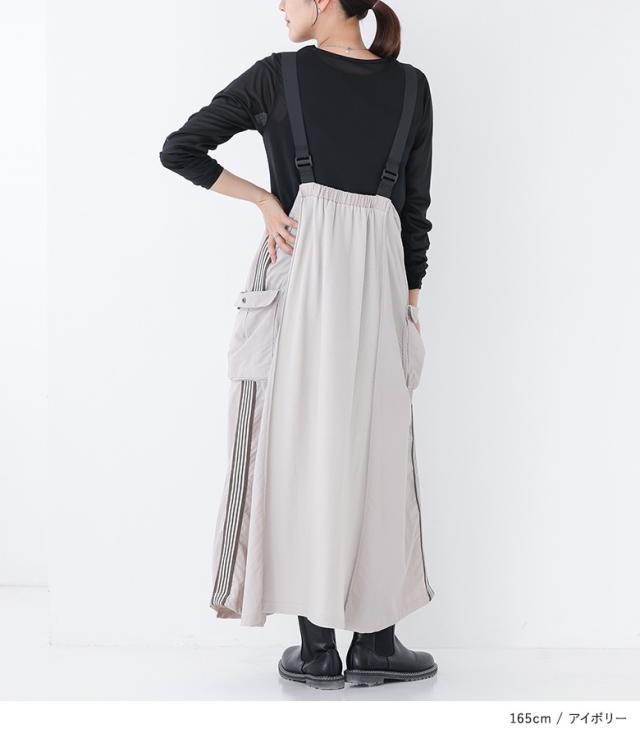 23日最大1200円クーポン 『リメイク風トラックサロペットスカート』【メール便不可】【30】[サロペットスカート レディース ドレス ジャンパースカート ワンピース サロペット ロング丈 異素材 春 夏 秋 冬 オールシーズン]
