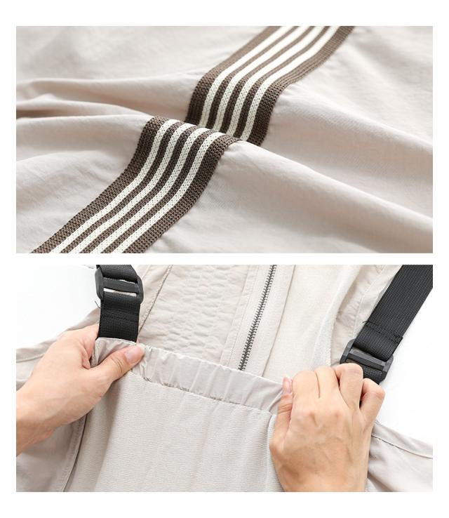 ■デザイン リメイク風のデザインで、こなれ感漂うトラックサロペットスカート。サイドにあしらわれたラインテープがスポーティーなアクセントになり、大胆な素材の切り替えが、遊び心と個性を演出する一着。肩のアジャスターで長さ調整が可能なのでお好みの丈感でご着用いただけます。 ■コーディネート インナーにシンプルなカットソーを合わせてカジュアルに。ブラウスやきれいめニットを合わせれば、ミックス感のある大人カジュアルスタイルが完成します。足元はサンダルやスニーカーでカジュアルダウンしたり、ショートブーツで引き締めたりと、様々なテイストに合わせやすいアイテムです。 ■素材 やわらかなコットン生地と、シャカシャカとした薄手のナイロン生地を組み合わせた異素材デザインです。 |