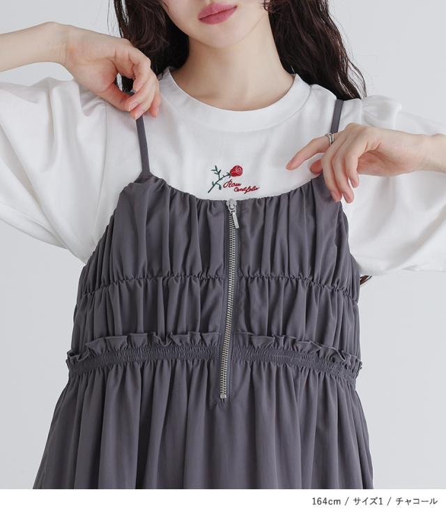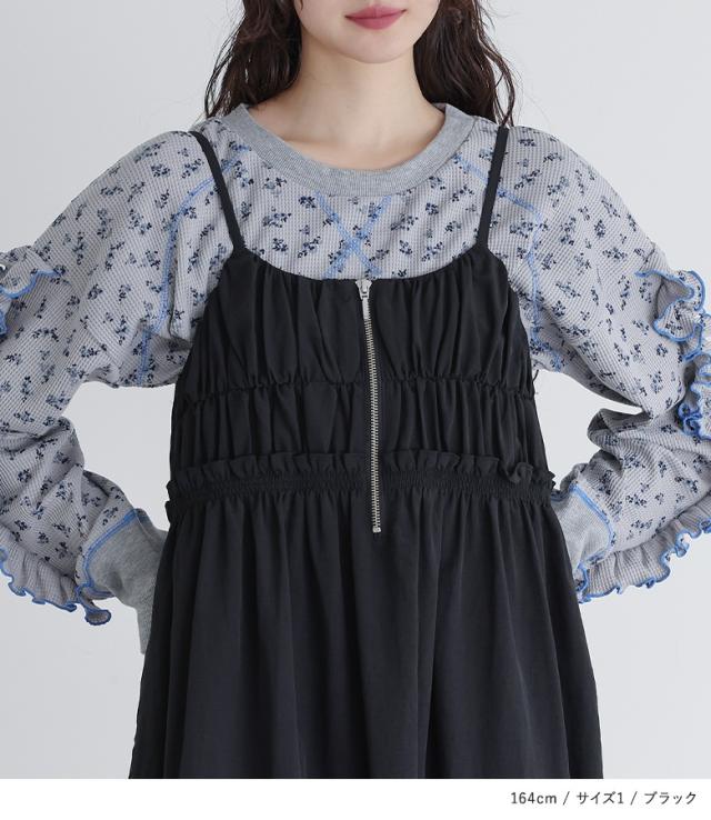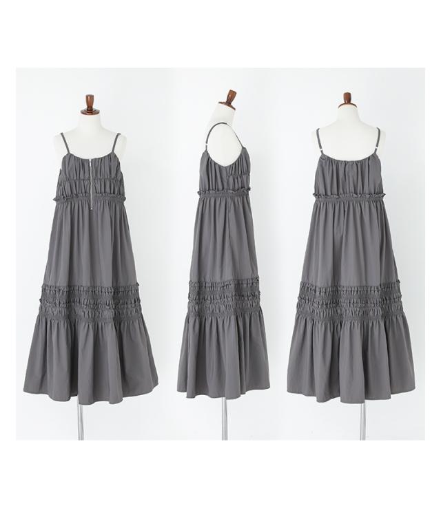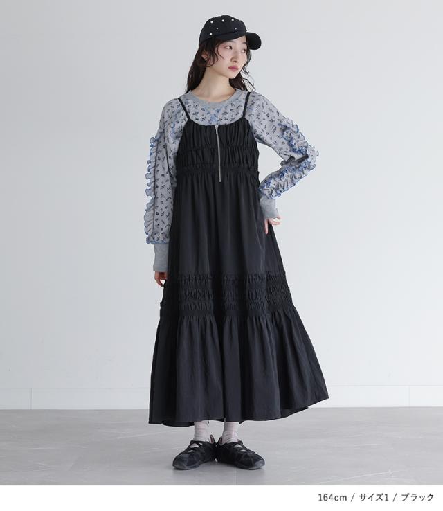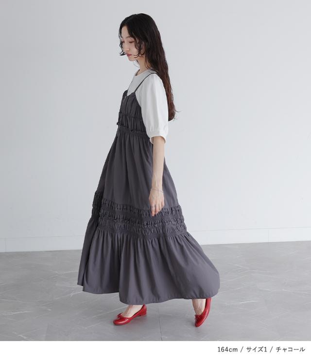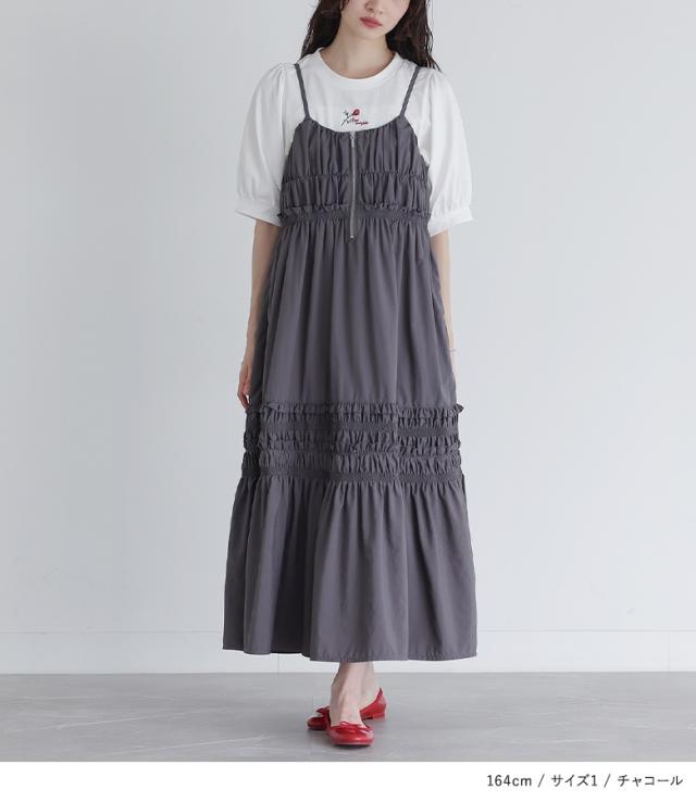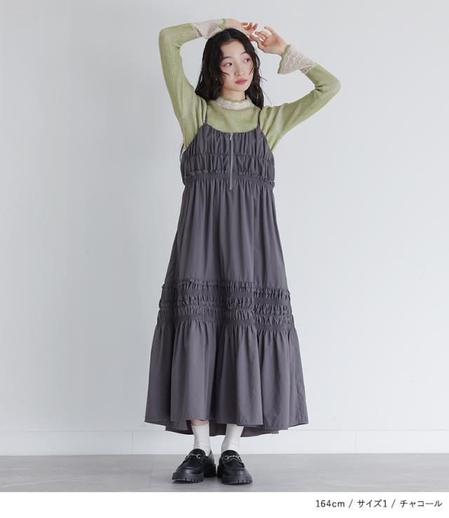 ワンピース レディース ドレス キャミソールワンピース ロングワンピース フリル レイヤード 重ね着 シャカシャカ キャミワンピ 春 夏 秋 冬 【TP】 マキシワンピース キャミワンピース ノースリーブ ロング丈 マキシ丈 調節できる 調整可能 ギャザー 無地 ナイロン100% ポケット ハーフジップ ファスナー おうちで洗える オールシーズン カジュアル レトロ クラシカル シンプル ナチュラル キレカジ フェミニン ガーリー Sサイズ Mサイズ Lサイズ LLサイズ 3Lサイズ XLサイズ ぽっちゃり 体型カバー 大きいサイズ プラスサイズ 10代 20代 30代 40代 50代 60代 低身長 高身長 女子会 オフィス 通勤 通学 お買い物 お出掛け 旅行 リゾート レジャー おしゃれ お洒落 トレンド 流行 somari imagination ソマリイマジネーション 可愛い系 大人女子 大人可愛い お洒落可愛い 大人カジュアル 上品 きれいめ osharewalker オシャレウォーカー おしゃれうぉーかー グレー 灰色 チャコールグレー チャコール ブラック 黒[ID]15do04d