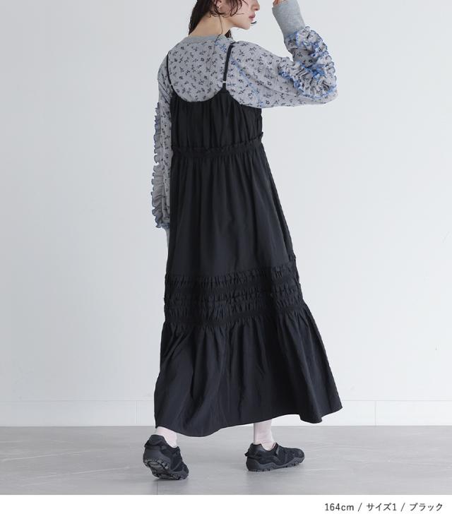 『フリルキャミワンピース』[ワンピース レディース ドレス キャミソールワンピース ロングワンピース フリル レイヤード 重ね着 シャカシャカ キャミワンピ 春 夏 秋 冬]