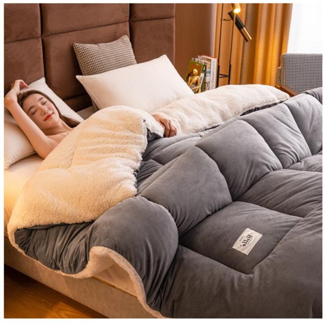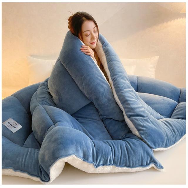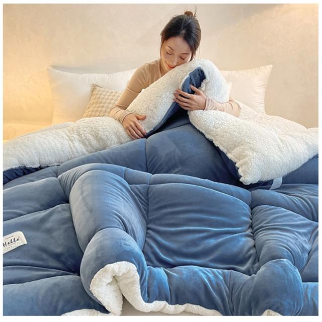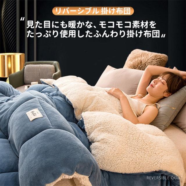 見た目にも暖かな、モコモコ素材をたっぷり使用したふんわり掛け布団