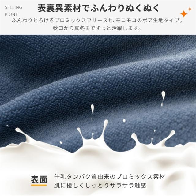 ふんわりとろけるプロミックスフリースと、モコモコのボア生地タイプ。秋口から真冬までずっと活躍します。