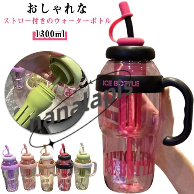 ウォーターボトル ストロー 1300ml かわいい ボトル ストロー付き おしゃれ 持ち運び 韓国風 おしゃれ 水筒 トレーニング ボトル 水筒 大容量 ストロー付き 軽い 便利 通勤 ジム ランニング 体操 ヨガ コップ 運動水筒 アウトドア ウォーターボトル スポーツ