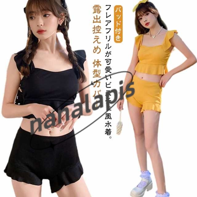 水着 ビキニ タンキニ 可愛い セパレート レディース 体型カバー 露出控えめ ラッシュガード ハーフパンツ フリル タンキニ 10代20代 30代 40代 ママ水着 ビスチェ風 上下セット パッド付き