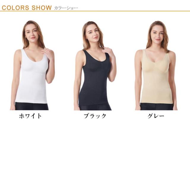 | スッキリシルエット 補正下着 カップ付き このブラトップカップ付きタンクトップは、女性の美しいボディラインをサポートする補正下着です。 バストアップ、お腹シェイプ、くびれメイクを簡単に実現。気になる箇所に加圧を強化し、24時間シェイプアップ効果を発揮。どんな時でも理想のボディラインに近づけます。 ウエスト部分のくびれ加工が、気になるぽっこりお腹をすっきり見せ、自然にスタイルアップを実現します。 ノンワイヤーでアンダーゴムなしの設計が、締め付け感をなくし、柔らかい素材が優しく体にフィット。伸縮性があり、着心地がとても良いです。 取り外し可能なカップ付きノンワイヤー加圧キャミソールで、ブラとキャミをそれぞれ着る必要なく、これ一枚で部屋着としてリラックスできます。 | |