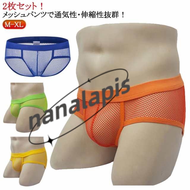 メンズ ビキニ セクシー メンズ メッシュ メンズ ブリーフ 男性下着 2枚セット メッシュ パンツ スケスケ ブリーフ 男 ビキニ アンダー アンダーウェア メッシュパンツ 通気性 伸縮性 涼しい ムレ防止