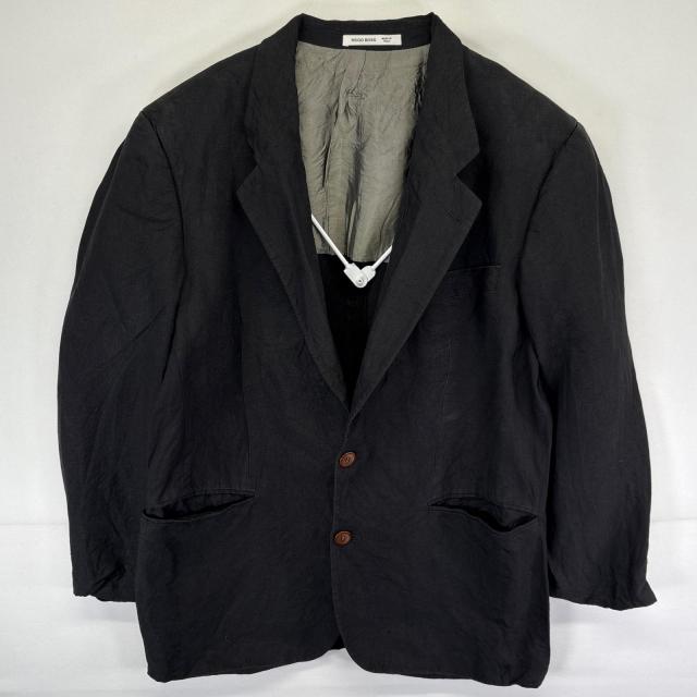 古着 ヒューゴボス HUGO BOSS イタリア製 テーラードジャケット ブレザー スーツ リネン ブラック メンズ