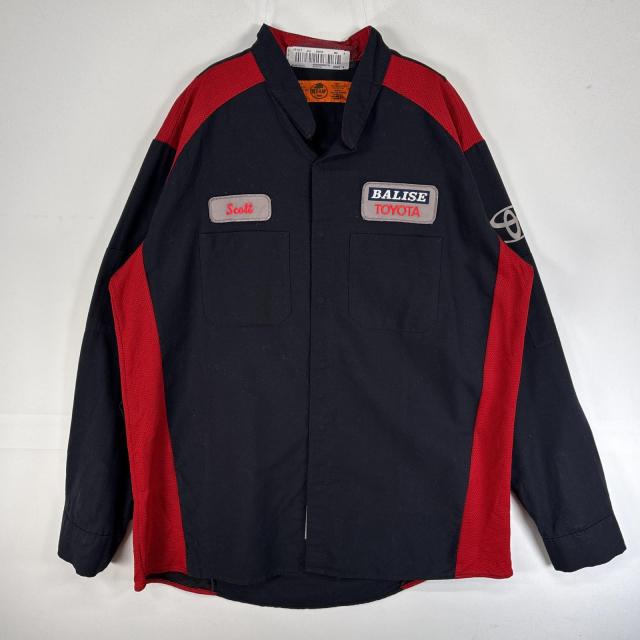 古着 レッドキャップ RED KAP 長袖シャツ ワーク 企業 トヨタ リフレクター ロゴ 公式 バンドカラー L ブラック ツートン メンズ