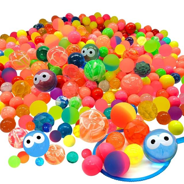 ?インパクト大!かわいいめだまボール入り!ダイヤ、マーブル、カラーなどいろいろな種類とサイズが混ざって入ったスーパーボールです。