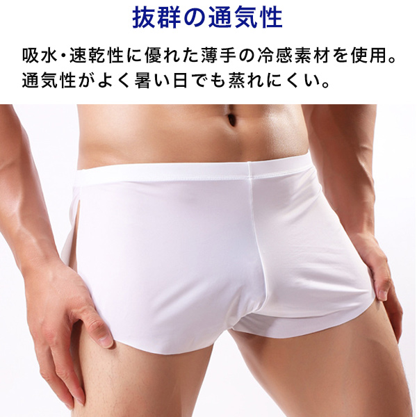 トランクス ボクサー ふんどし パンツ インナー スリット 吸汗速乾 通気性 接触冷感 肌着 下着 ストレッチ 締め付けない 男性用 無地 送料無料