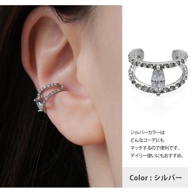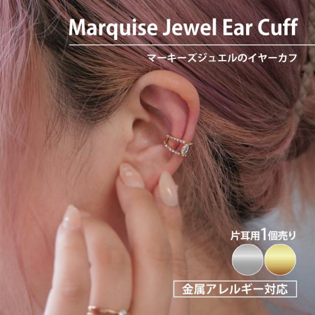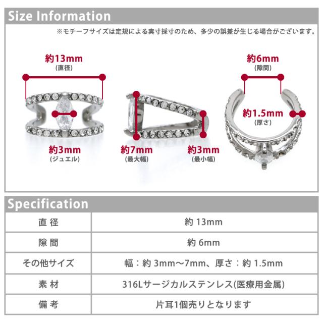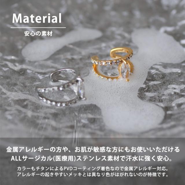 金属アレルギー対応 ステンレスイヤーカフ マーキーズジュエルイヤーカフ 片耳用 イヤーフック 316L
