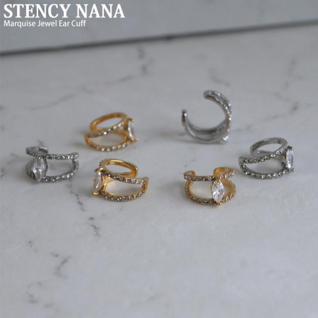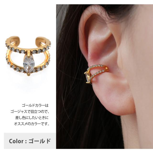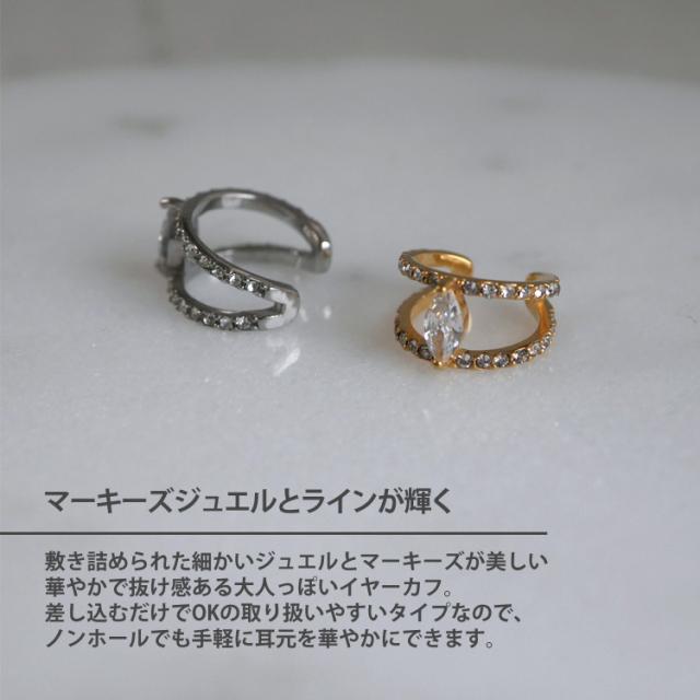 敷き詰められた細かいジュエルとマーキーズが美しい華やかで抜け感ある大人っぽいイヤーカフ。