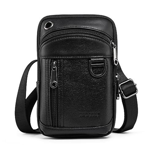 スマホポーチ メンズ ベルトレザー 2台収納 耐久性 多機能 本革ミニショルダーバッグ小型 腰用携帯電話ウエストポーチiPhone Andro