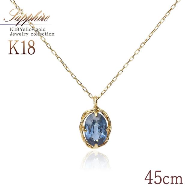 18金 18K サファイア ネックレス 45cm 長め ゴールド 一粒ジュエリー レディース アクセサリー プレゼント 誕生日 宝石 ブルー 青 シンプル K18 18金ピアス サファイヤ 記念日 ギフト 一粒ネックレス サファイアネックレス 女性 彼女 妻 嫁 イエローゴールド 20代 30代 人気