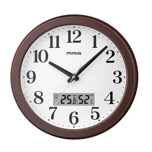 ノア精密【アナログ・デジタル】MAG アナデジ自動点灯掛時計 明夜(メイヤ) ブラウン W-810-BR-Z【温度・湿度表示付き】木目調