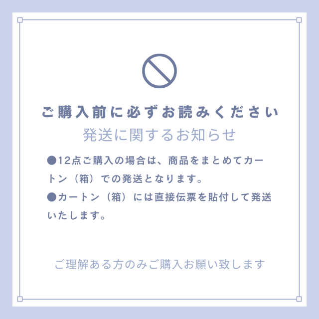 ・ご注文頂いたお届け先住所、お届け先氏名などが同等だった場合は、当ショップの判断にて複数のご注文を同梱させて配送手続きを行わせて頂く場合がございます。予めご了承ください。