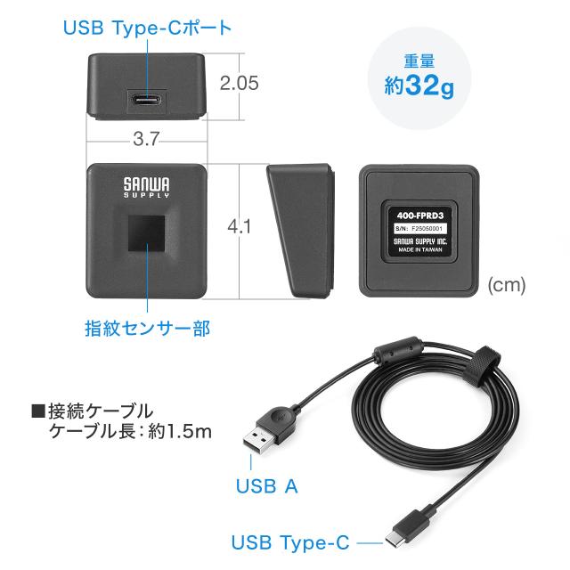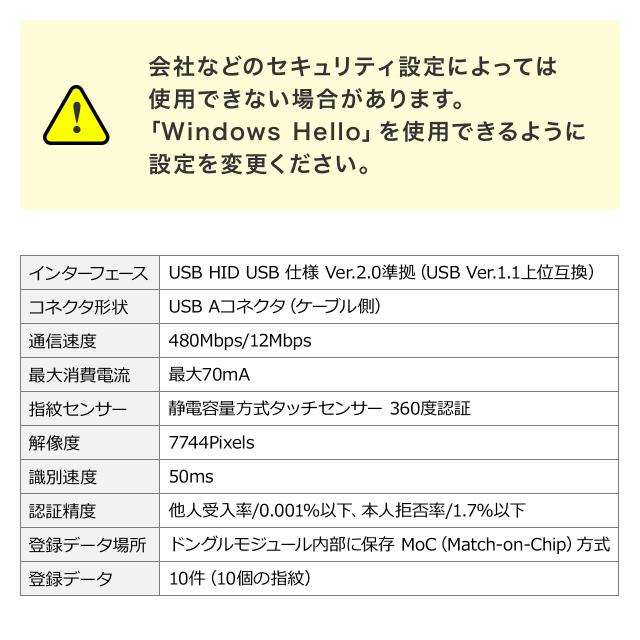 ⇒ご購入の前にご確認下さいWindows 11、Windows 10搭載の「Windows Hello」を使用したパソコン用の指紋認証リーダー。セキュリティレベルの高いMoC方式を採用。パソコンのUSBポートへ指紋認証リーダーをUSB A接続するだけで、ドライバを自動インストール。最大10件までの指紋を登録可能。ケーブル長は1.5mあるので、デスクトップPCにも最適。【WEB限定品】