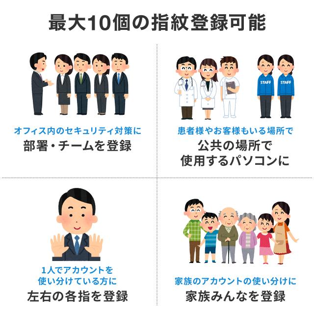 ●Windows 11、10搭載の生体認証機能「Windows Hello」で指紋認証ログインすることができます。