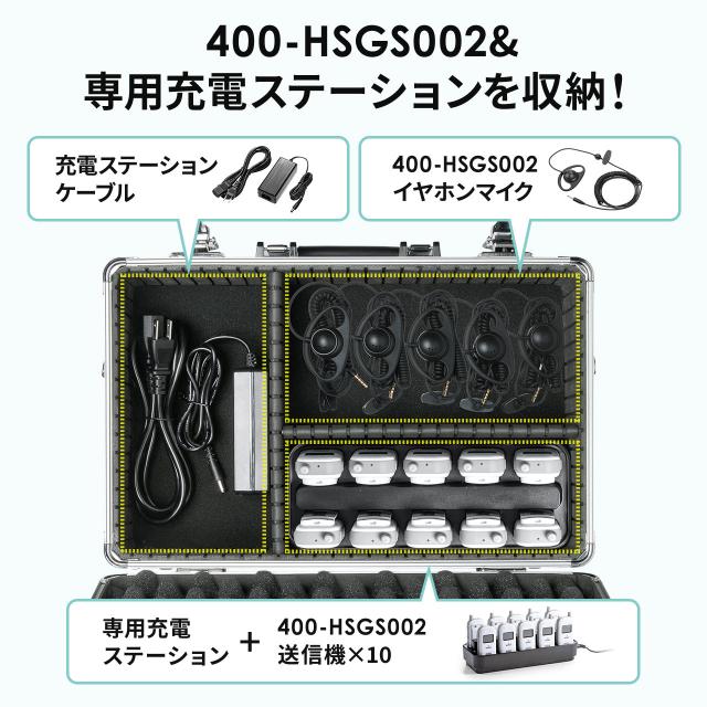 ⇒ご購入の前にご確認下さいワイヤレスガイドシステム(400-HSGS002)本体や充電器(400-HSGS-CL2)を収納できるアルミケース。ショルダーベルト付きで持ち運びもしやすく、鍵付きの収納ケース・キャリングケース。【WEB限定商品】