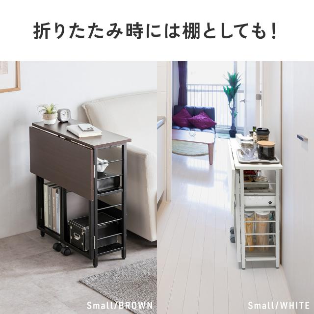 折りたたみデスク 折りたたみテーブル コンパクトデスク リビング学習 収納棚 省スペース 幅80cm 奥行60cm 棚つき 多機能テーブル ブラウン ホワイト[100-DESKH083]