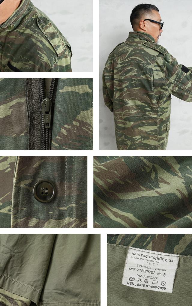 ギリシャ軍から放出されたリザードカモを使用したM-65タイプのフィールドジャケットが入荷しました。