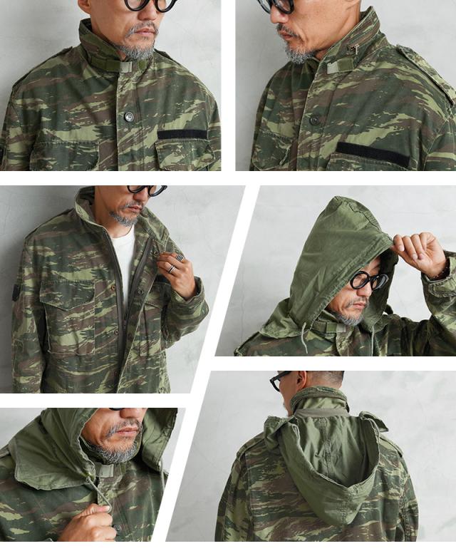 実物 USED ギリシャ軍 M-65 フィールドジャケット フード付き リザードカモ【Cx】【I】|ミリタリージャケット メンズ M65 古着 軍物 防寒 アウター カモフラージュ ヴィンテージ