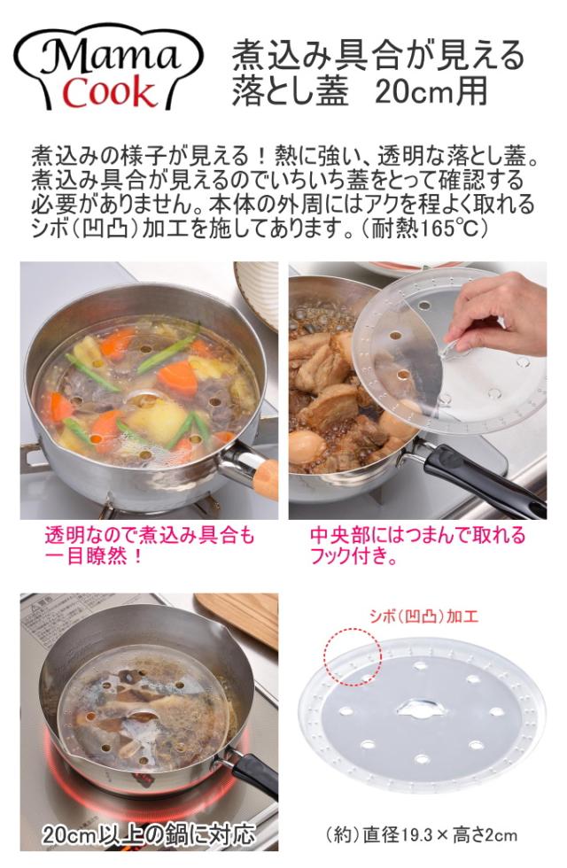 ママクック 煮込み具合が見える落とし蓋 20cm用 1枚 45863 日本製 燕三条 落とし蓋 落しぶた 鍋 1枚 クリア 透明 中が見える 透明フタ 煮込む 煮込み料理 あくとり あく取り アク 食洗器OK 便利 キッチン キッチン用品 調理器具 下村企販