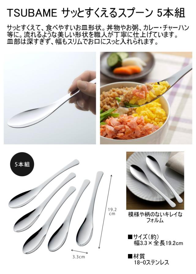 TSUBAME サッとすくえるスプーン 5本組 40248 日本製 燕三条 ステンレス 5本セット キッチン用品 カトラリー スプーン スリム カレー チャーハン 丼物 おかゆ 食事 シンプル 使いやすい 食べやすい すくいやすい 下村企販