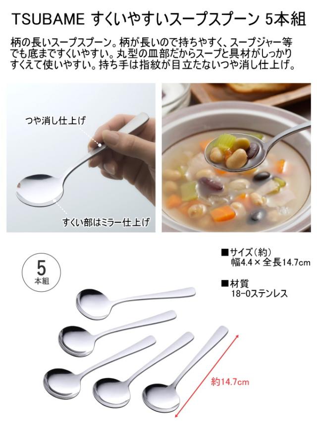 TSUBAME すくいやすいスープスプーン 5本組 40249 日本製 燕三条 ステンレス 5本セット キッチン用品 カトラリー スプーン スープスプーン 長柄 丸型 食事 シンプル スープ スープジャー 使いやすい 食べやすい すくいやすい 下村企販